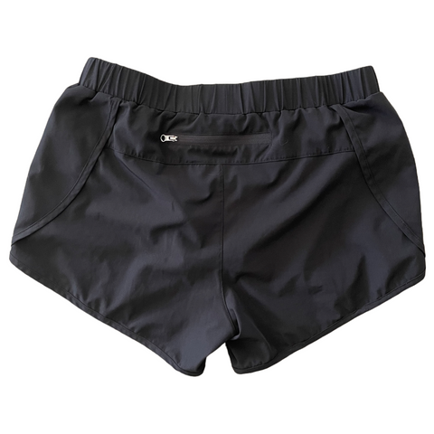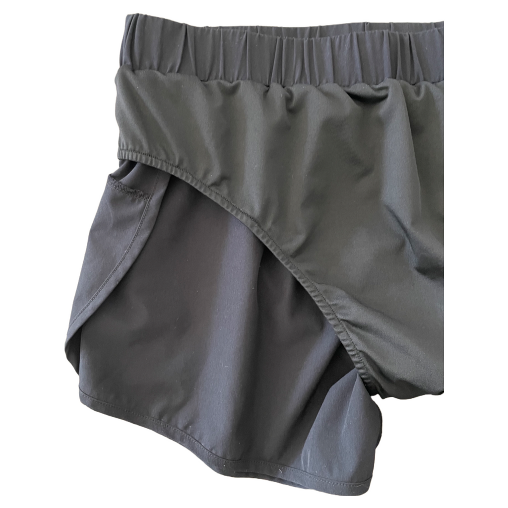 Offered in classic black, these shorts boast a comfortable, true-to-size fit secured by a drawstring waistband. A back middle zipper pocket is provided for convenient storage, with a discreet brief inside. Ships in 6-8 weeks.